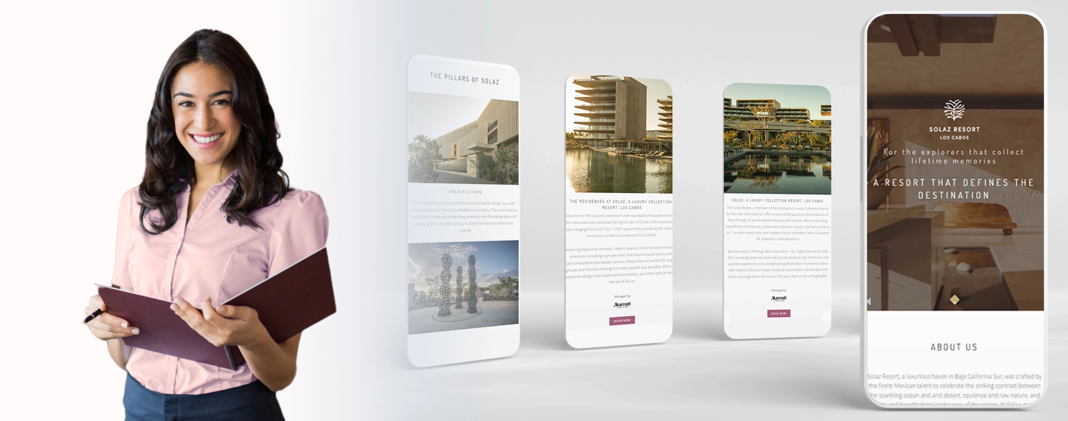 Solaz Hotel & Residences, reconocido por su hospitalidad de lujo, representa un oasis de elegancia en el paradisiaco destino de Los Cabos, México. Como parte de nuestros esfuerzos digitales para el lanzamiento y consolidación de la presencia de marca en medios digitales, nos enfocamos en proporcionar una herramienta de comunicación flexible que transmitiera la belleza arquitectónica del lugar y sus incomparables vistas en el entorno digital.